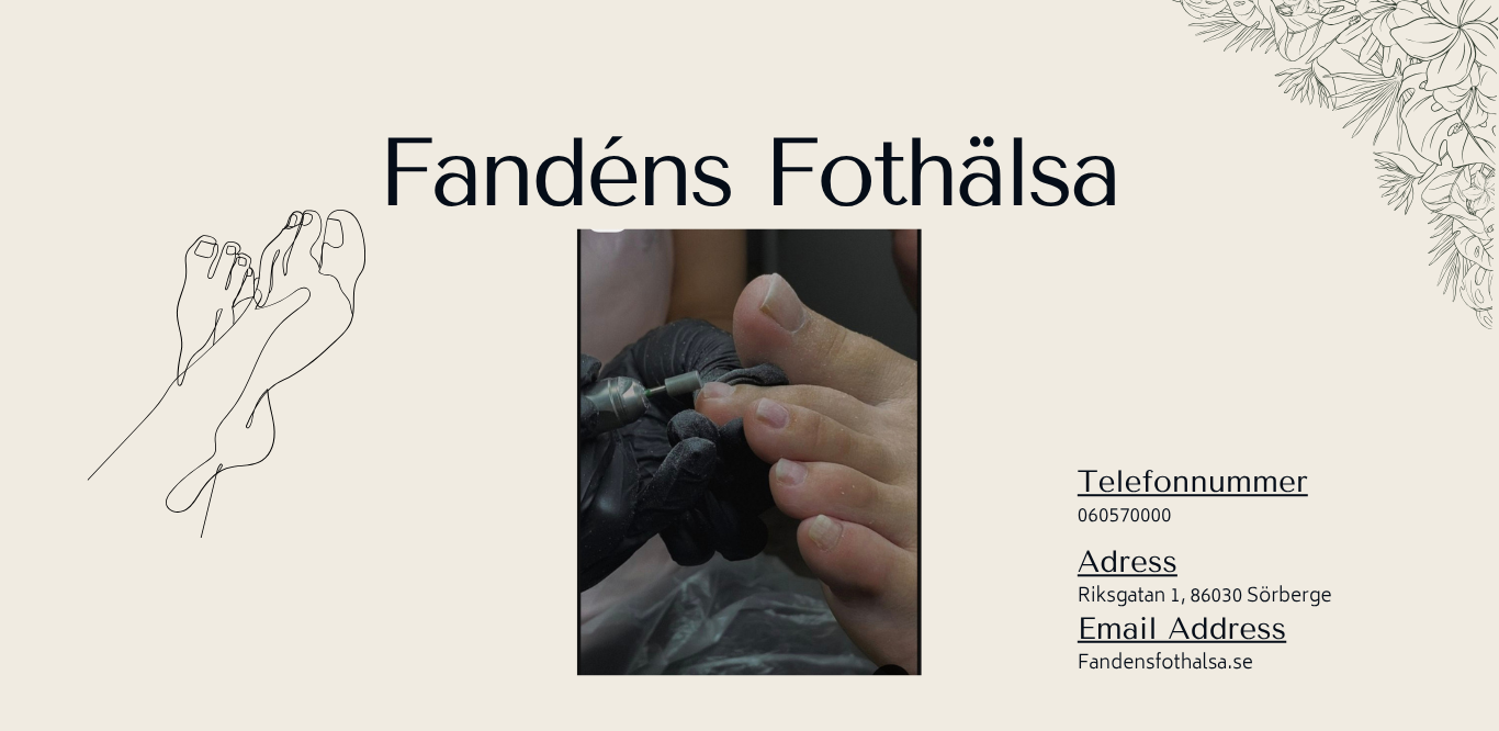 Efter många år inom vården valde jag att följa min passion – att starta Fandéns Fothälsa. Här får du som kund personligt bemötande, fullt fokus och professionell fotvård anpassad efter just dina behov. Mitt mål är att du ska lämna behandlingen med lättare steg och starkare fötter!